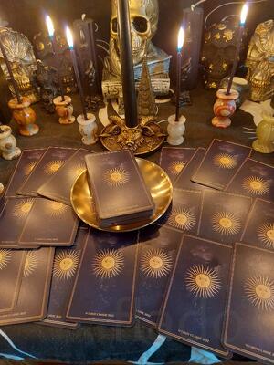 Создание атмосферы. Я привожу с собой весь реквизит — красивую скатерть, магический шар, свечи, подсвечники, камушки и статуэтки. От вас нужен только стол и стулья.